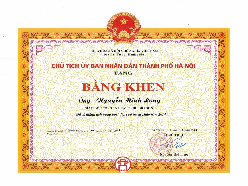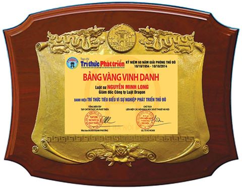 Luật sư Nguyễn Minh Long được Đoàn luật sư Hà Nội trao tặng kỷ niệm chương vì luật sư " Bảo Vệ Công Lý"
